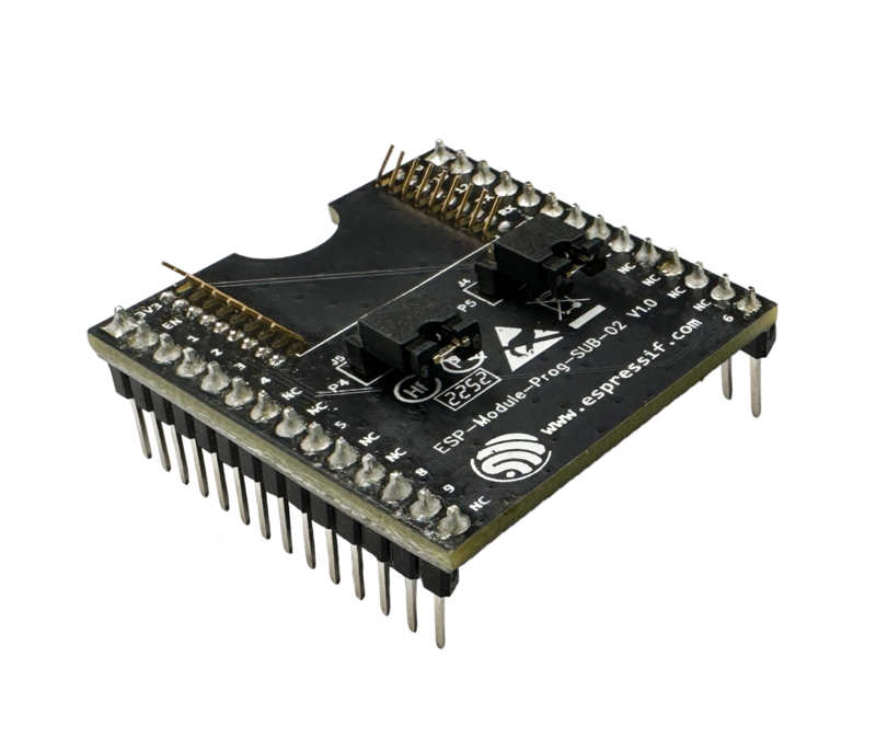 AliExpress/ESP-Module-Prog-SUB-02, AliExpress-SH/ESP-Module-Prog-SUB-02ESP-Module-Prog-SUB-02 is an Espressif flashing subboard designed specifically for modules. It can be used to flash modules without soldering the module to the power supply and signal lines. With a module mounted, ESP-Module-Prog-SUB-02 can also be used as a mini development board like ESP32-DevKitC. Note that as a subboard, ESP-Module-Prog-SUB-02 cannot be used alone, but must be used together with the ESP-Module-Prog-1 or ESP-Module-Prog-1R mainboard.