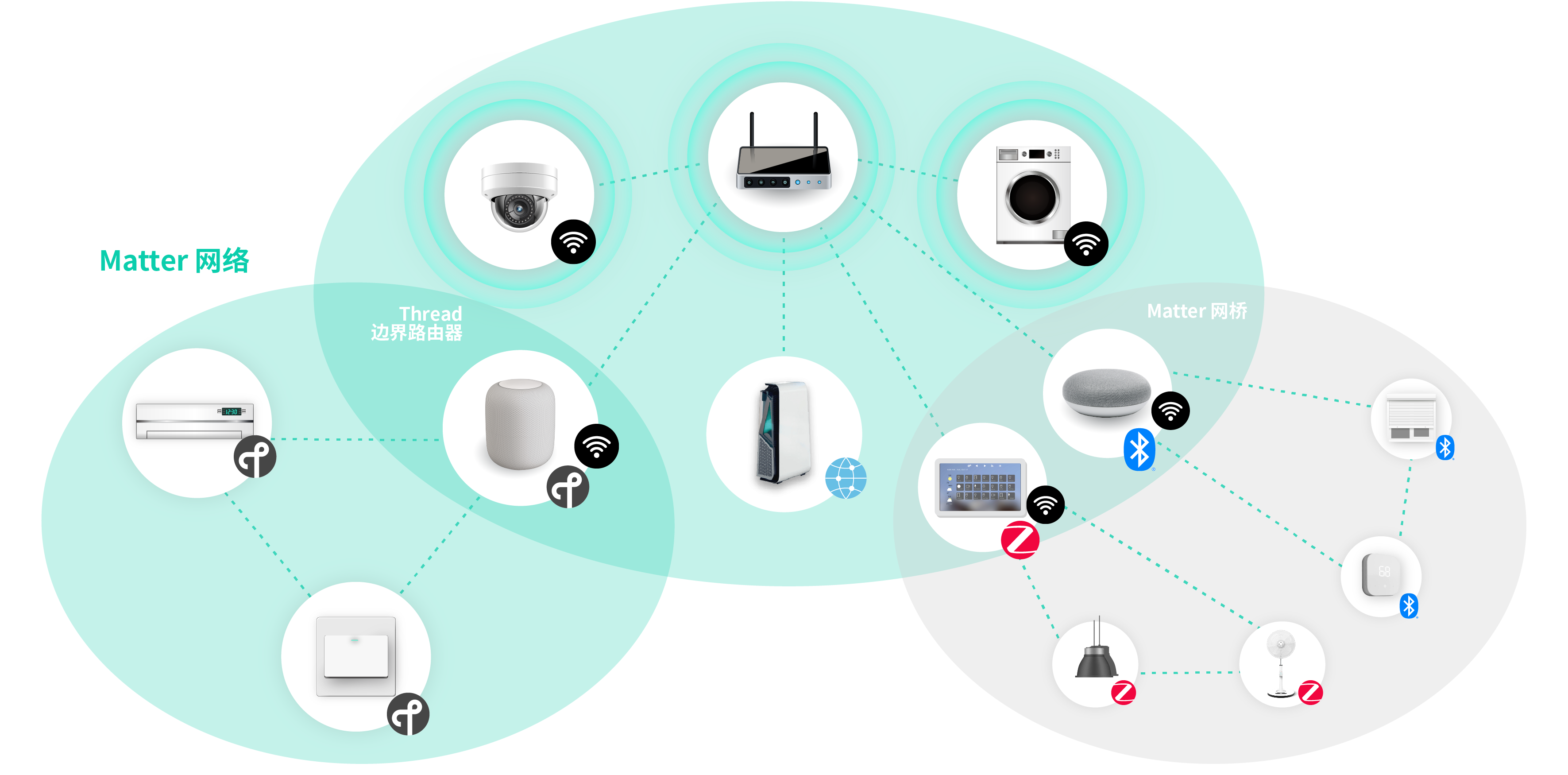 By combining ESP32-H and ESP32-S3 or another Espressif Wi-Fi SoC, e.g., ESP32, a Matter-Zigbee bridge device can be built for connecting Matter and non-Matter networks.