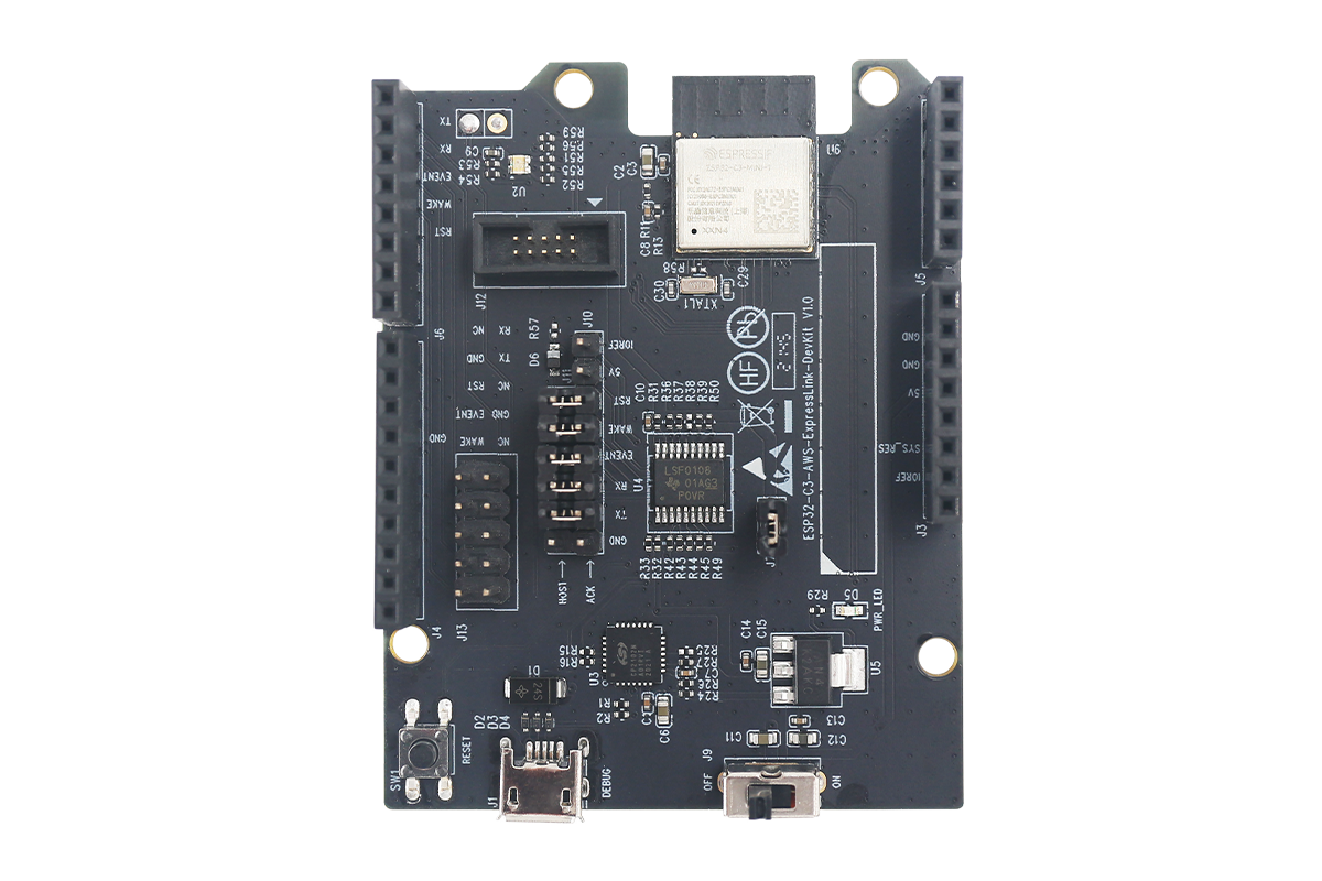 ESP32-C3-AWS-ExpressLink-DevKit is a development board based on the ESP32-C3-MINI-1-N4-A module. Its pin layout is compatible with that of the Arduino Zero development board, and therefore ESP32-C3-AWS-ExpressLink-DevKit can be directly plugged in Arduino Zero, or connected with other host boards and peripherals via jumpers. |