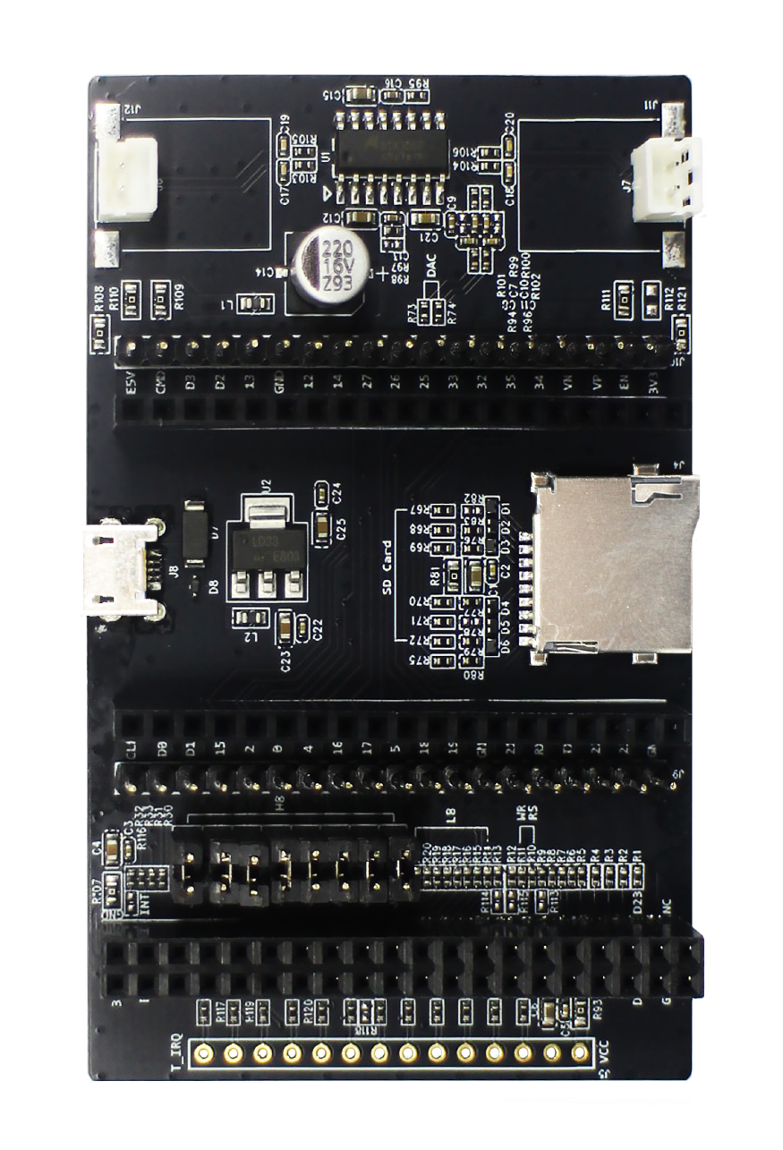 ESP32-LCD-Kit is an HMI (Human Machine Interface) development board based on ESP32-DevKitC (need to purchase if you didn’t have one). ESP32-LCDKit is integrated with such peripherals as SD-Card, DAC-Audio, and can be connected an external display. The board is mainly used for HMI-related development and evaluation. Development board reserved screen interface type: SPI serial interface, 8-bit parallel interface, 16-bit parallel interface. |